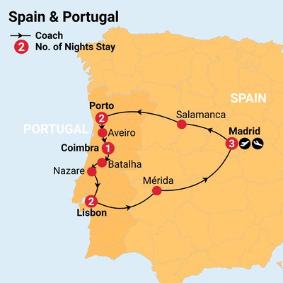 While in Spain and Portugal, you will travel by private coach. This journey spans a vast and varied landscape, providing the perfect opportunity to sit back, relax, and enjoy the scenic views. Please review the itinerary for estimated travel times