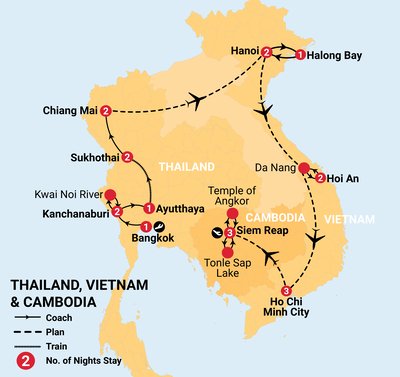 Uncover the rich history and vibrant culture of Thailand, Vietnam, and Cambodia on this 21 day tour. Travel from Bangkoks Grand Palace to the River Kwai, explore ancient Ayutthaya, and take a scenic Halong Bay cruise. Wander the streets of Hoi An and Hanoi, delve into Ho Chi Minh Citys past, and marvel at Angkors Temples. Enjoy 4 star stays, premium transport, guided tours, and authentic local cuisine all expertly curated for an immersive, hassle-free adventure.