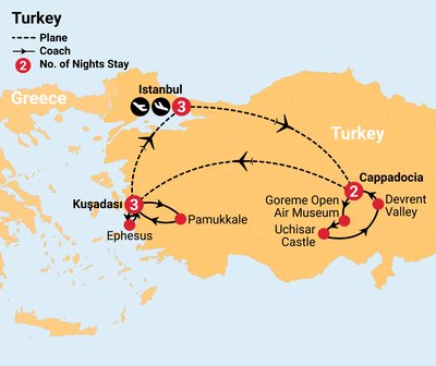 Experience the best of Turkey on this 9-day semi-independent tour, exploring Istanbul's historic sites, Cappadocia's unique landscapes, and the ancient ruins of Ephesus. Enjoy the flexibility to discover at your own pace, with the convenience of organised travel and accommodations.