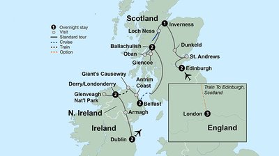 Your tour opens in Edinburgh, the historic capital of Scotland, where rocky hills tower in the distance and the shadows of history can be seen around every corner. Discover Scotland's capital and see how medieval crossroads blend seamlessly with a vibrant modern energy.