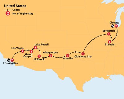 Say goodbye to Chicago as you set off on the legendary Historic Route 66, one of America’s most iconic highways. Travel through classic Americana landscapes of rolling cornfields and wide open prairies, discovering charming roadside attractions and timeless scenery along the way. Follow the traditional east to west route toward St. Louis, Missouri, a vibrant city rich in history and culture. Upon arrival, marvel at the spectacular Gateway Arch, the nation’s tallest monument and a powerful symbol of westward expansion, set within a beautiful National Park and honouring famous explorers such as Lewis and Clark.