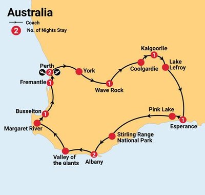 Today you’ll set out across the stunning Darling Ranges on the way to the charming town of York. Tour the historic town of York then continue to Hyden and visit the incredible Wave Rock.