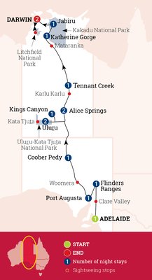 ✓ Explore outback towns of Coober Pedy and Tennant Creek