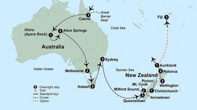 Travel through the majestic countryside of the North Island, arriving in New Zealand's largest city, Auckland, "The City of Sails." A panoramic city tour features the America’s Cup Village, the War Memorial, vibrant Queen Street, the Auckland Harbour Bridge, and spectacular views from the harbourside.