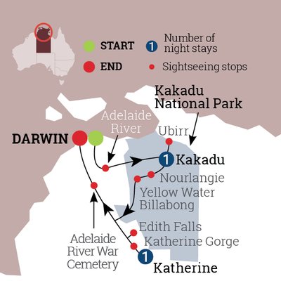 Depart Darwin and travel along the Arnhem Highway, their major river systems and wetlands, into Kakadu National Park. Located 257 kilometres east of Darwin, the national park covers 20,000 square kilometres of landscape varying from rocky escarpment that is home to historic Aboriginal rock art dating back thousands of years, to the floodplains that are abundant with wildlife. Stop at Nourlangie, where your Driver Guide will lead you on a walk to view the rock art galleries.