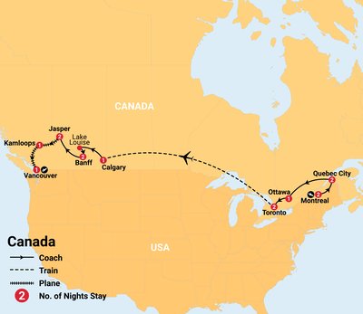 Discover Canada’s highlights from coast to coast, exploring vibrant cities, historic Quebec and Ottawa, and the power of Niagara Falls. Experience the stunning landscapes of Banff, Jasper, and Lake Louise, and journey aboard the Rocky Mountaineer through the breathtaking Canadian Rockies.