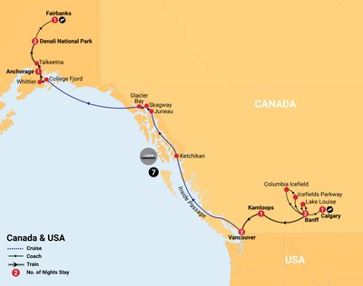 ✓ Incredible sightseeing including, Banff National Parks snow-capped peaks, experience the Rocky Mountaineer and cruise the Inside Passage to Alaska and Denali