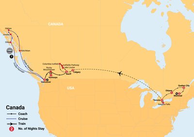 ✓ Experience Niagara Falls, Banff National Parks snow-capped peaks, the iconic Rocky Mountaineer and cruise the Inside Passage to Alaska