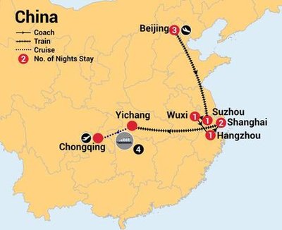 In the afternoon we continue on to Hangzhou, once described by Marco Polo as “the most beautiful and magnificent city in the world”. Upon arrival in Hangzhou you'll have the evening free to spend at your leisure: relax or take up our optional excursions, enjoying a performance.