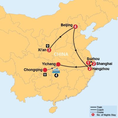 Today you'll travel from Shanghai to Yichang by high-speed train. Upon arrival, you'll board your Yangtze River Cruise ship and settle in to your cabin before departure tomorrow.