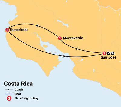 Bienvenido a Costa Rica! Welcome to Costa Rica! A representative will greet you and assist you at the airport. Shared transfer from airport to the hotel in San Jose city. Upon arrival, check -in and enjoy leisure time to refresh, relax and get comfortable in your hotel room. Explore by your own the city and its surroundings.