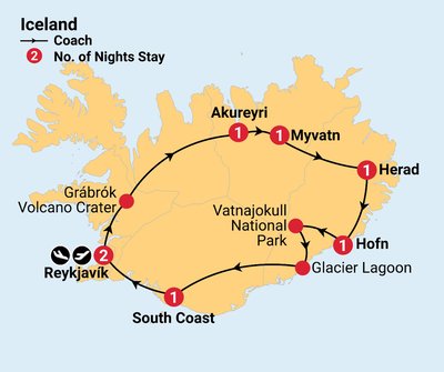 ✓ Incredible sightseeing including travelling Iceland's famous ring road, stunning volcanos, lava fields, the Myvatn Nature Baths, Gullfoss Waterfall and Thingvellir Geysir