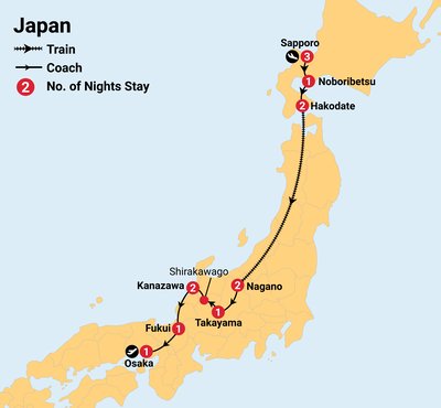 This is a combination of a Group Tour and Independent Travel. You will be escorted by a professional English speaking local guide from Osaka to Tokyo and travel independently from Tokyo to to Sapporo. All accommodation, trains and sightseeing are booked for you to ensure a smooth travel experience.