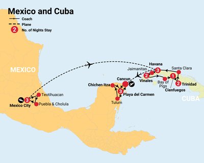 ✓ Incredible sightseeing including guided tours of Old Havana & Mexico City, UNESCO-listed Viñales Valley, classic convertible car tour, interactive music and salsa lessons, see the Pyramid of the Sun at Teotihuacan and the Mayan site of Chichen Itza