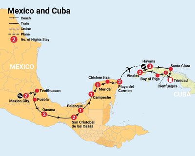 ✓ Incredible sightseeing, including the UNESCO World Heritage Sites of Mexico City’s historic Zocalo, downtown Puebla, the ancient Maya cities of Palenque, Uxmal and charming Old Havana