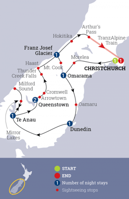 If weather conditions are unfavourable on Day 15, you will get another chance to fly up to the glaciers this morning or you might want to take a stroll through the small but lively Franz Josef village. Then you head off to the drift-wood strewn beaches of Hokitika. As well as being one of the few West Coast communities to embrace its coastal landscape, Hokitika struck it rich in the resource's stakes. Here you will visit a pounamu factory (native greenstone or jade), for the chance to see master carvers at work creating intricate pieces of jewellery and art. Maori tradition says it is bad luck to buy pounamu for yourself, so if you fancy a trinket of your own, make sure you have someone there to purchase it for you. From Hokitika, you will travel inland to the small settlement of Arthur’s Pass. Here you will board the TranzAlpine train to Christchurch city. This spectacular train journey dates back to 1914 and is rated as one of the world’s most scenic train trips. The train forges through tunnels and over viaducts with panoramic views of snow-capped peaks, icy rivers, beech forests, gorges and river valleys. This evening, join your AAT Kings Travel Director and Driver, and your new-found friends for a Farewell Dinner.