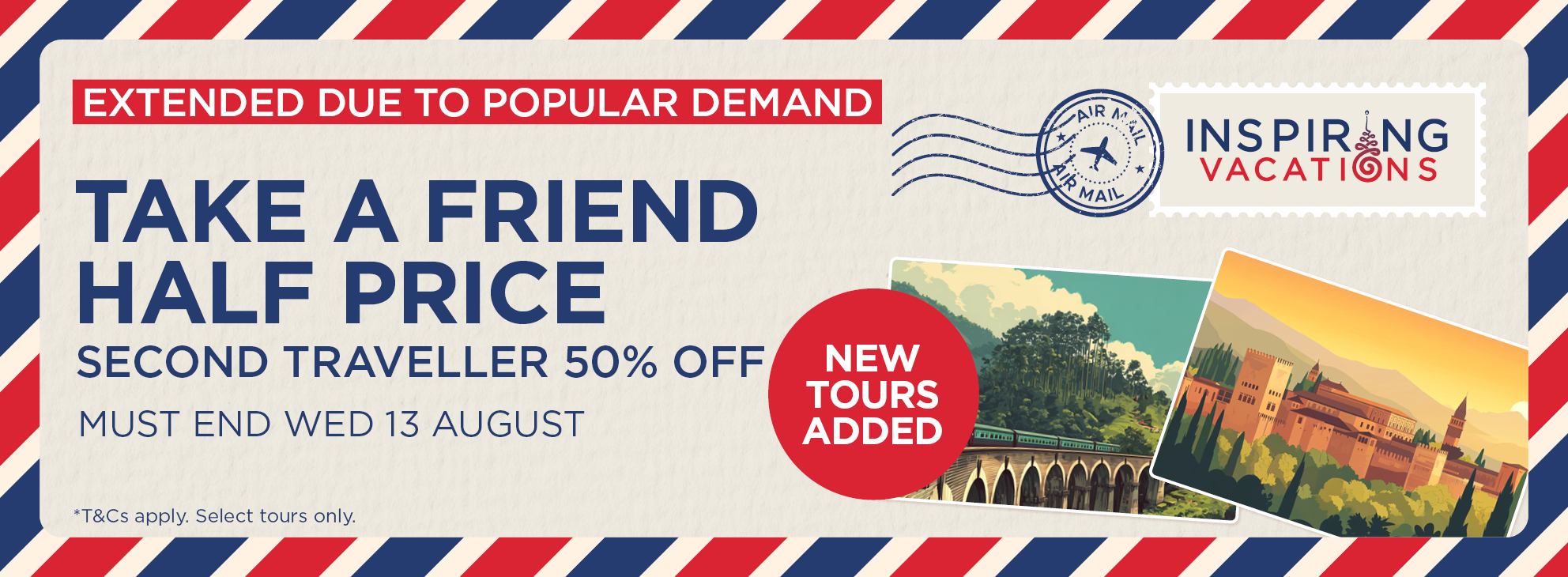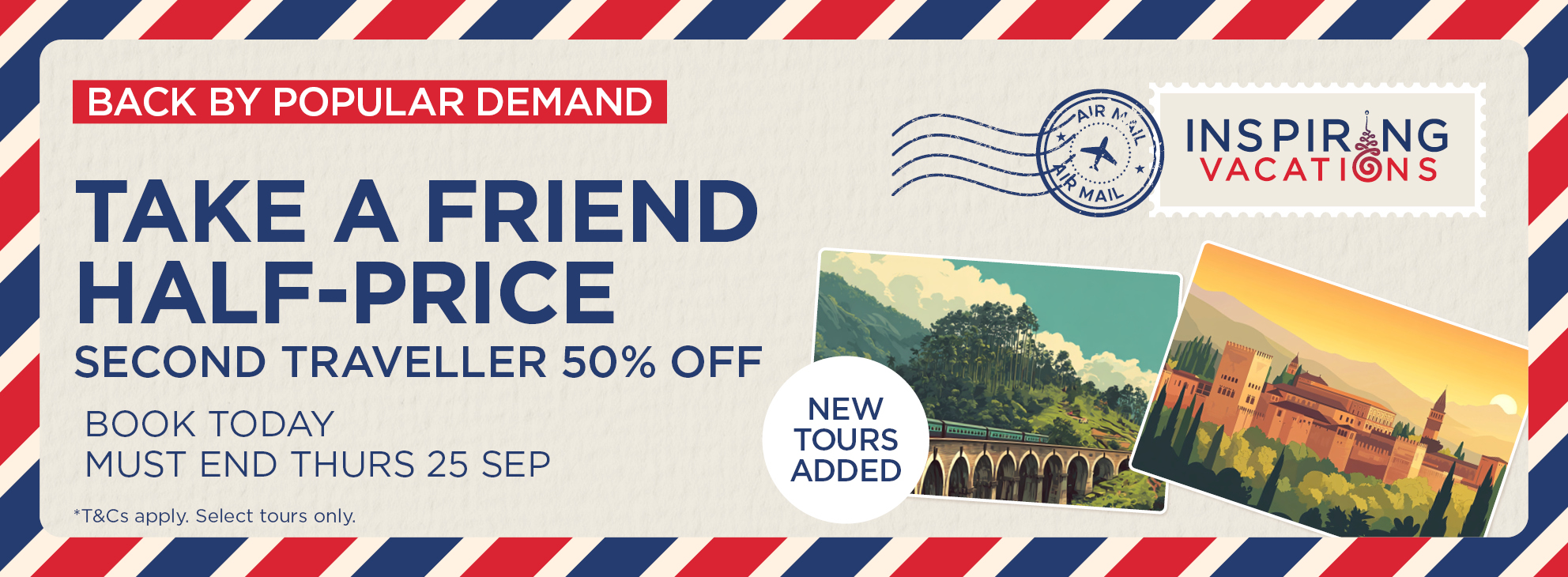 With our new limited-time Take A Friend Half Price offer - back by popular demand and with extra tours added - the second traveller saves 50% off their place with code BUDDY50.