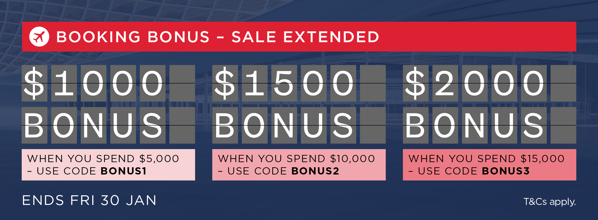 Sale extended: Spend more and save more with our tiered booking bonus.