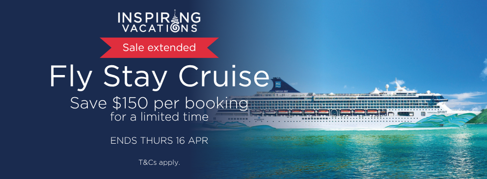 Save $150 per booking when you book a Fly Stay Cruise package. Book online using the code shown on your chosen trip, or call our travel specialists on 0800 475 025 to book. Be quick - this offer sets sail on Thurs 16 April 2026.