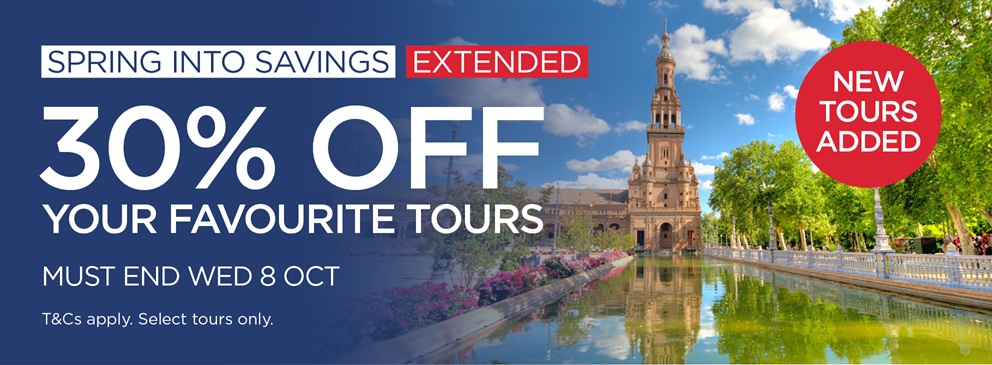 Spring into savings with 30% off our customers’ favourite tours. But be quick - this special flash sale will only last until Wednesday 8 October or until sold out!