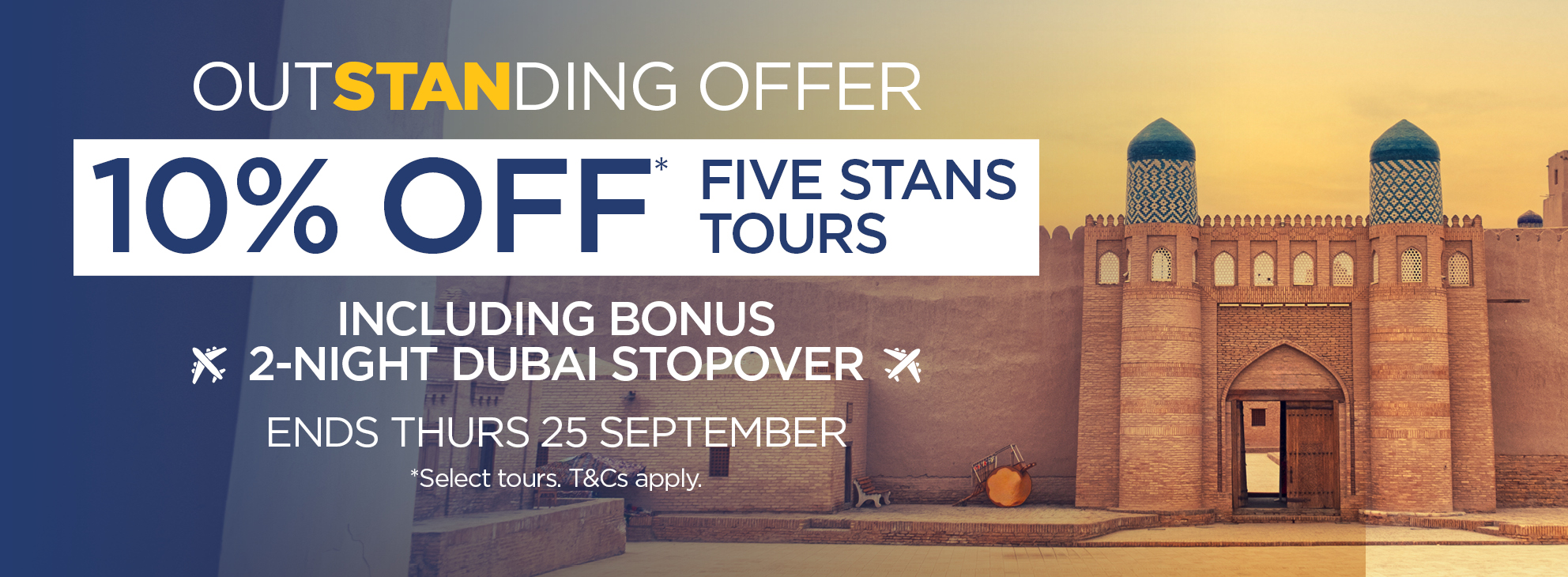 Book either the 25 Day Dubai & Five Stans Unveiled or the 27 Day Dubai, Five Stans Unveiled & Mary Extension before 25 September 2025 and save 10% with code STANSTOP.