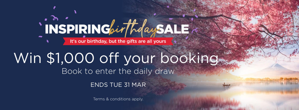 It may be our birthday but we're giving you all the gifts! Book with Inspiring Vacations and you could win $1,000 off your booking thanks to our Grand Daily Prize giveaway. To enter, book a tour between Fri 27 February and Tues 31 March 2026 and you'll be automatically entered into the prize draw.