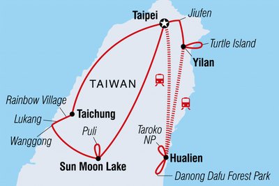 ✓ Visit Taipei's Chiang Kai Shek Memoral Hall, Hualien night arket, Yilan whisky destillery and go on a boat tour in Turtle Island.