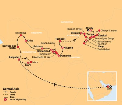 ✓ Explore Dubai and the famous 5 Stans of Central Asia: Turkmenistan, Uzbekistan, Tajikistan, Kyrgyzstan and Kazakhstan