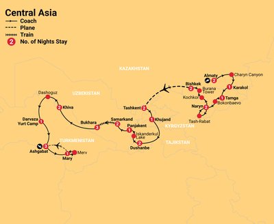 ✓ Explore the famous Five Stans of Central Asia: Turkmenistan, Uzbekistan, Tajikistan, Kyrgyzstan and Kazakhstan