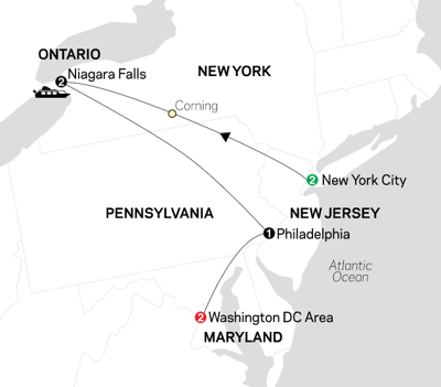 The birthplace of American independence, the "City of Brotherly Love" is steeped in history. Your morning orientation tour focuses on the historic landmarks, then on to the U.S. capital and seat of government, Washington DC, for a 2-night stay.