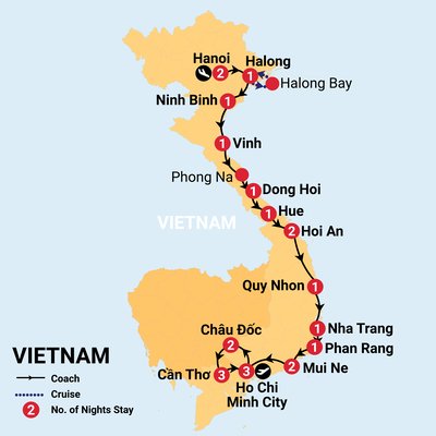 ✓ 22 nights in 3-4-star hotels throughout Vietnam