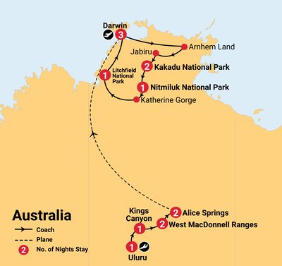 ✓ 5 nights in 3 to 4-star accommodation in Alice Springs and Darwin