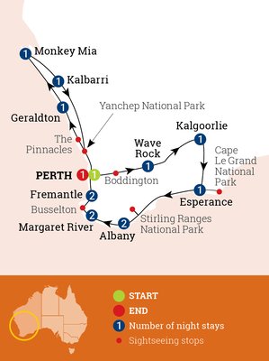 You may like to take a stroll along the 2-kilometre jetty in Busselton, a popular holiday town on the shores of Geographe Bay. On arrival in Fremantle, the afternoon is yours to explore this wonderful city. You could visit the colourful Fremantle Markets to purchase local arts and crafts and taste local produce. We recommend taking a wander along the Fremantle foreshore to observe the impressive fishing fleet. Enjoy dinner this evening at your hotel.