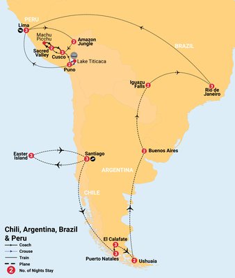 ✓ Incredible sightseeing, including Machu Picchu, the Peruvian Amazon jungle, thundering Iguazu Falls, Lake Titicaca, glamorous Buenos Aires and vibrant Rio de Janeiro