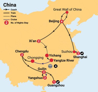 Embark on a 20-day journey through China, starting in Shanghai. Explore iconic cities like Beijing and Chengdu, marvel at the Forbidden City, see pandas up close, and unwind on a 4-night Yangtze River cruise—plus discover hidden gems beyond the usual tourist trail for an unforgettable adventure.