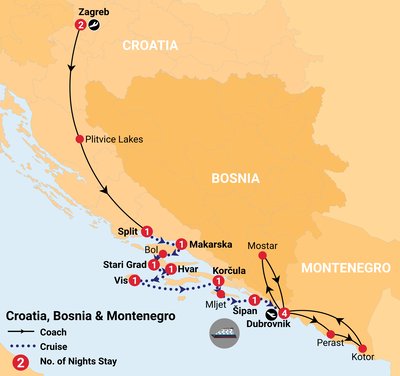 ✓ Incredible sightseeing including guided tours of Zagreb, Split, Hvar, Korčula, Dubrovnik, UNESCO-listed Plitvice Lakes, Montenegro and island hopping along the Dalmatian Coast