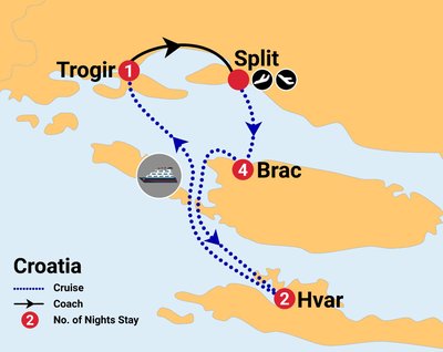 Note: On day 1 of the tour you are transferred to the island of Brac, please arrive before 03:00 pm.