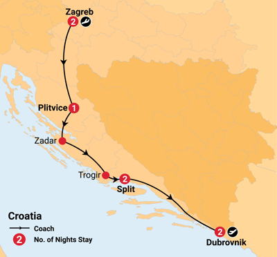 ✓ Incredible sightseeing including in-depth exploration of Zagreb, Zadar, Plitvice National Park, Trogir, Split & Dubrovnik