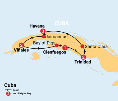 ✓ Incredible sightseeing including guided tours of Old Havana, UNESCO-listed Viñales Valley, classic convertible car tour, swim stop at Bay of Pigs, interactive music and salsa lessons, cocktail making, visit to Che Guevara Mausoleum