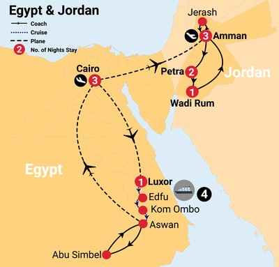 Today, say goodbye to your Egyptian tour leader and get ready for the next leg of your journey as you are transferred to the airport for your flight to Amman, Jordan.