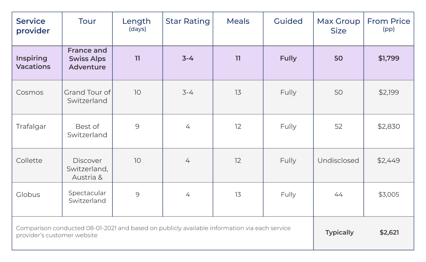 ✓ Incredible sightseeing including a guided city tour of Paris and entry to the Eiffel Tower, explore picturesque Chillon Castle built on Lake Geneva, and discover incredible mountain scenery and quaint villages in the European Alps