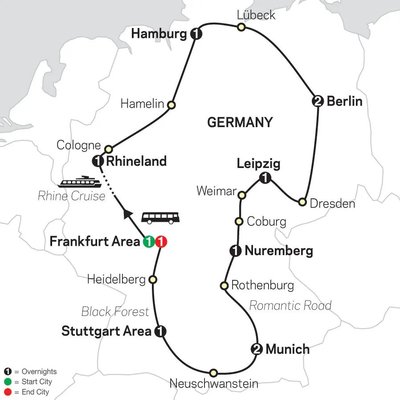 The day starts with a scenic drive for a taste of the Black Forest landscapes and villages, followed by visit to Heidelberg- location of Germany's oldest university and inspiration for the German Romantic movement. From here, continue to Frankfurt