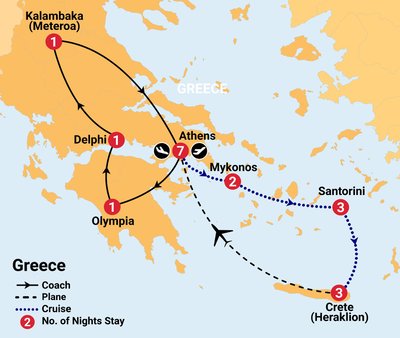 After breakfast, a transfer will collect you to drive you to Heraklion Airport where you will catch a flight back to Athens.