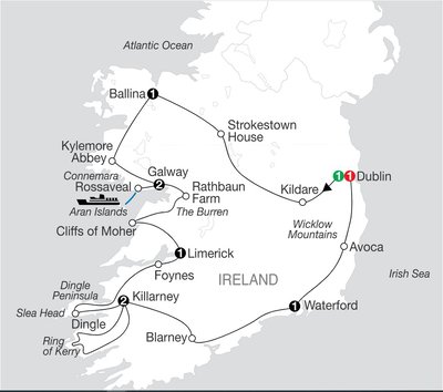 Cead mile failte-a hundred-thousand welcomes! At 3pm, meet your Tour Director and travelling companions for an afternoon orientation drive, including O'Connell Street, St. Patrick's Cathedral, and Trinity College.