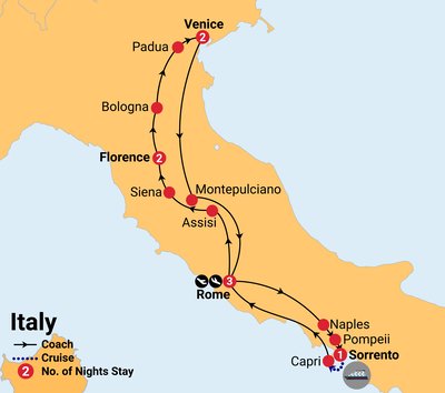 You will have plenty of time to roam the island at your own pace before heading back to the mainland where we join our coach for the 3.5-hour return transfer to Rome. The rest of the evening is at your leisure.