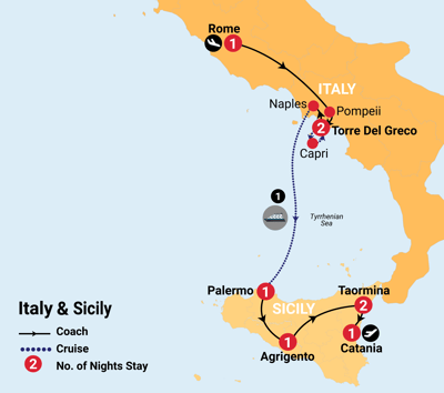 Later, we'll board an overnight ferry for the next leg of our journey, venturing towards the enchanting island of Sicily.
