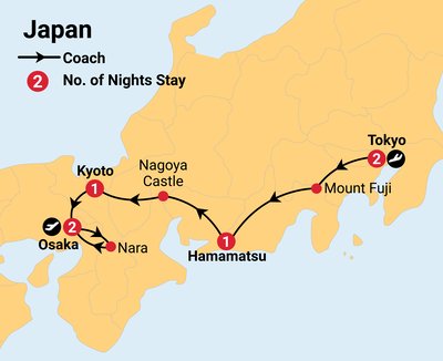 Following a full day exploring the Mount Fuji area, continue on to Hamamatsu, where you can enjoy the evening at your leisure.