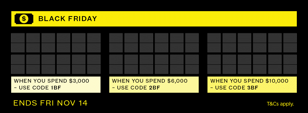 Receive $500 in bonus value using code 1BF when you spend $3,000+: