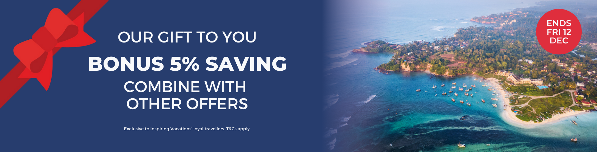 As a thank you to our past travellers, you can save 5% off your next Inspiring Vacations tour - on top of our existing 10% off sitewide sale and Last Minute deals! Offer ends Friday 12 December 2025.