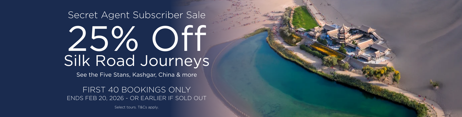Save 25% on select tours to the Silk Road with code SECRETAGENT when booking online, or call our travel specialists on 1 888 356 2021.